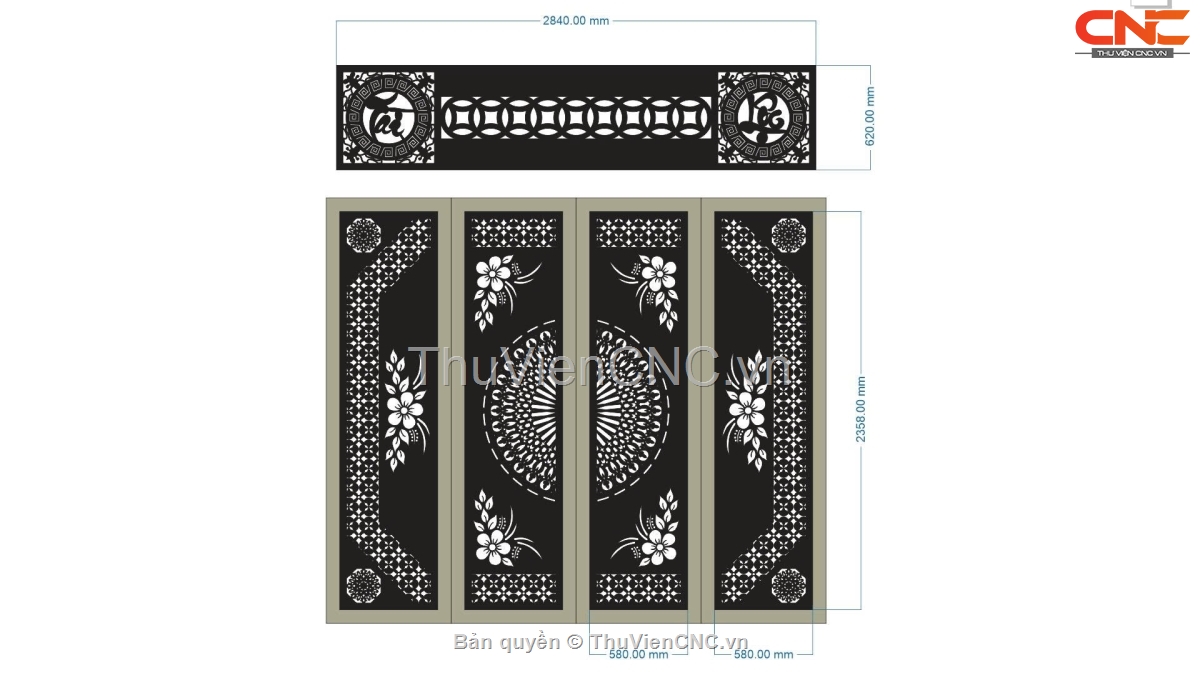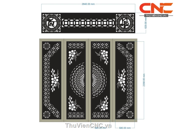 Model cnc cổng 4 cánh hoa kết hợp ô thoáng tài lộc