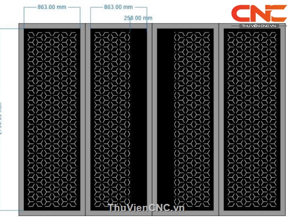 Model cnc cổng 4 cánh hoa văn bông tuyết