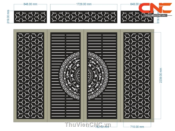 Model cnc cổng 4 cánh ô thoáng bông tuyết