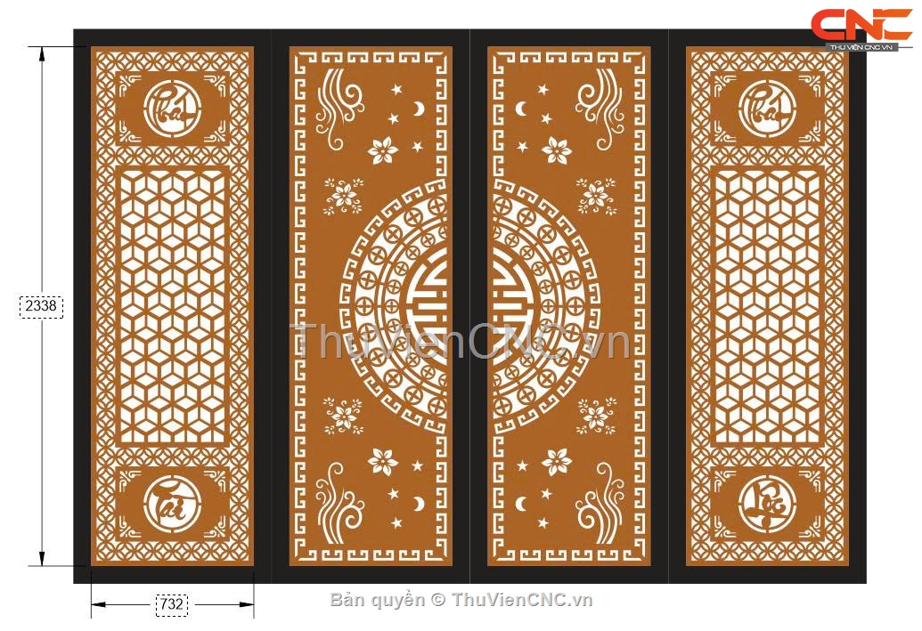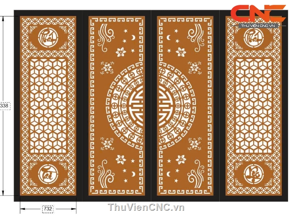 Model cnc cổng 4 cánh phát tài phát lộc trống chữ thọ