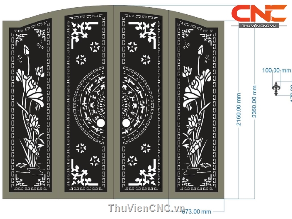 Model cnc cổng 4 cánh sen trống đồng mới