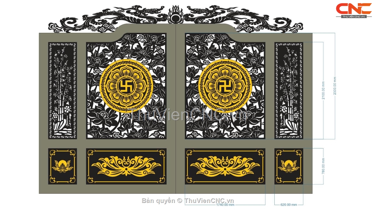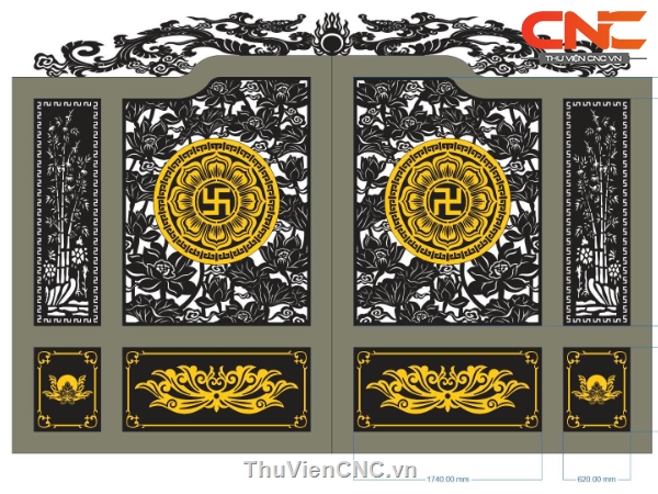 Model cnc cổng 4 cánh sen vòm cổng rồng