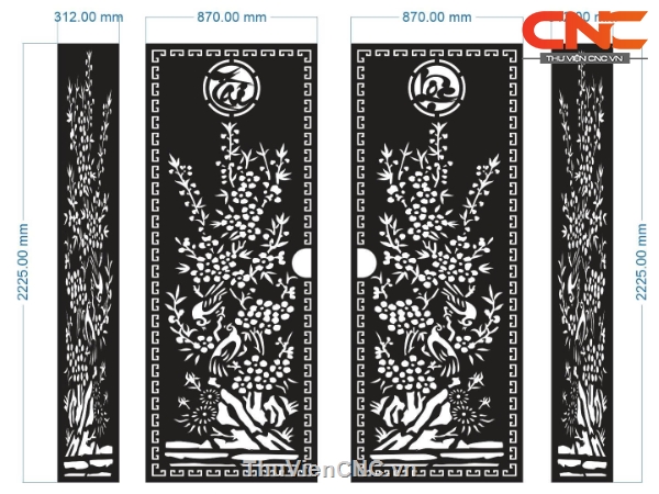 Model cnc cổng 4 cánh tài lộc mai
