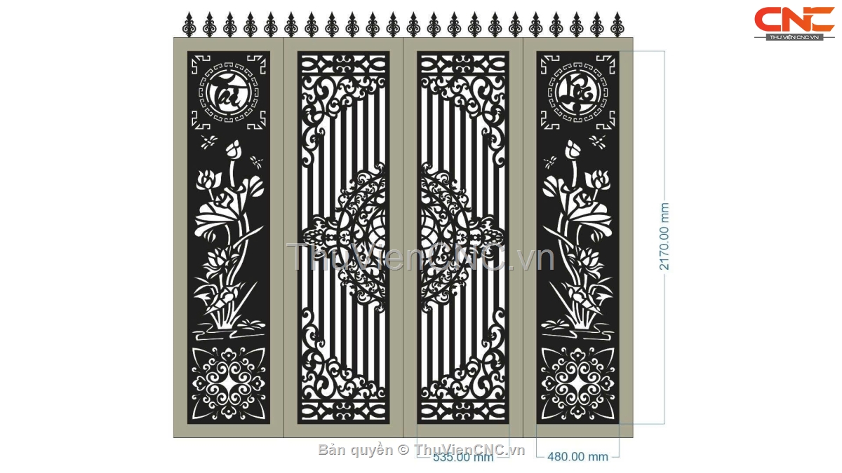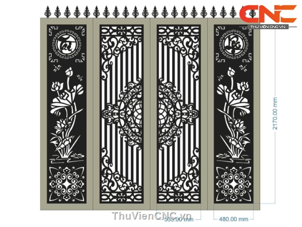 Mẫu cổng 4 cánh cnc được mình bản vẽ trên cad, chỉ cần download về là có thể sử dụng ngay.