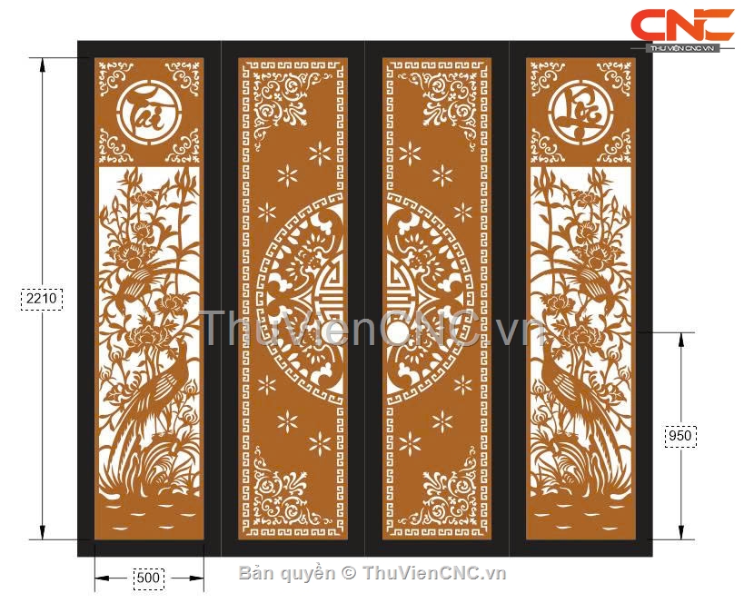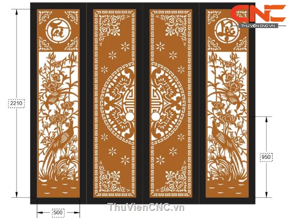 Model cnc cổng 4 cánh tài lộc trống dơi đẹp