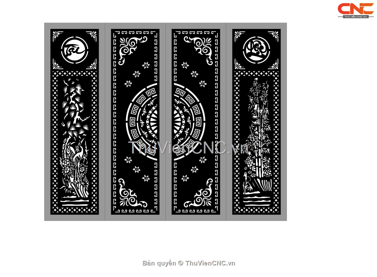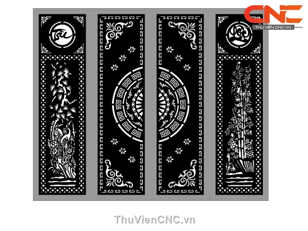Model cnc cổng 4 cánh tài lộc tùng trúc