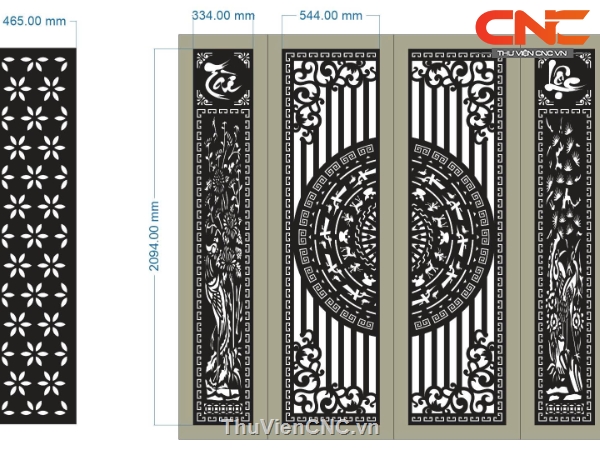 Model cnc cổng 4 cánh tài lộc và cánh phụ hoa
