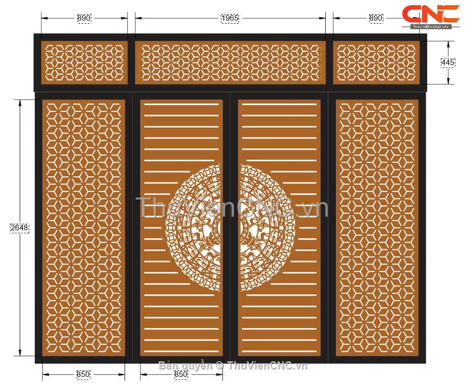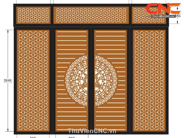 Model cnc cổng 4 cánh trống đồng bông tuyết có ô thoáng