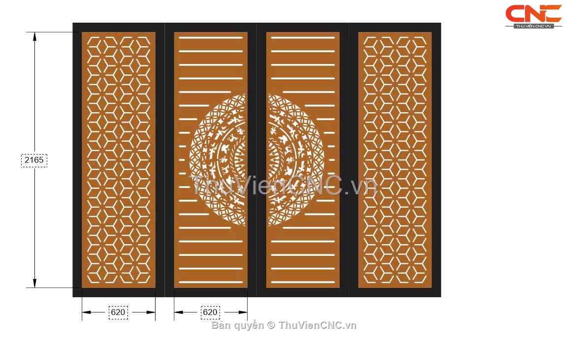 Model cnc cổng 4 cánh trống đồng bông tuyết đẹp