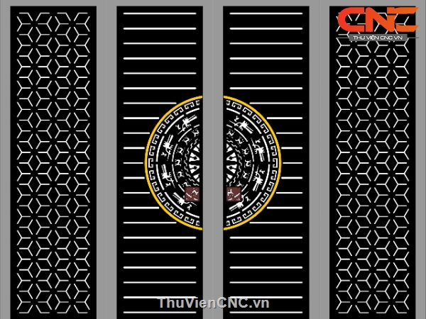 Model cnc cổng 4 cánh trống đồng bông tuyết dwg