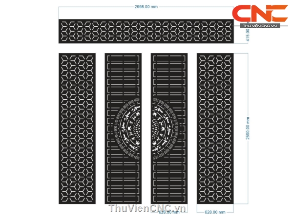 Model cnc cổng 4 cánh trống đồng bông tuyết mới dxf