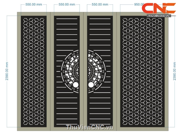 Model cnc cổng 4 cánh trống đồng có cánh lệch
