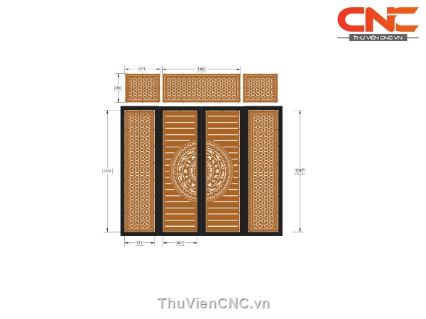 Model cnc cổng 4 cánh trống đồng có ô thoáng mới
