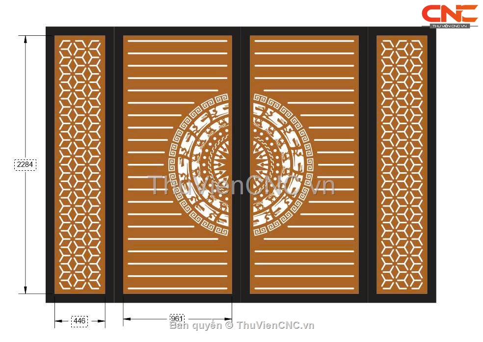 Mẫu cnc cổng 4 cánh trống đồng không chỉ mang giá trị thẩm mỹ cao mà độ bền của nó còn đi theo năm tháng.