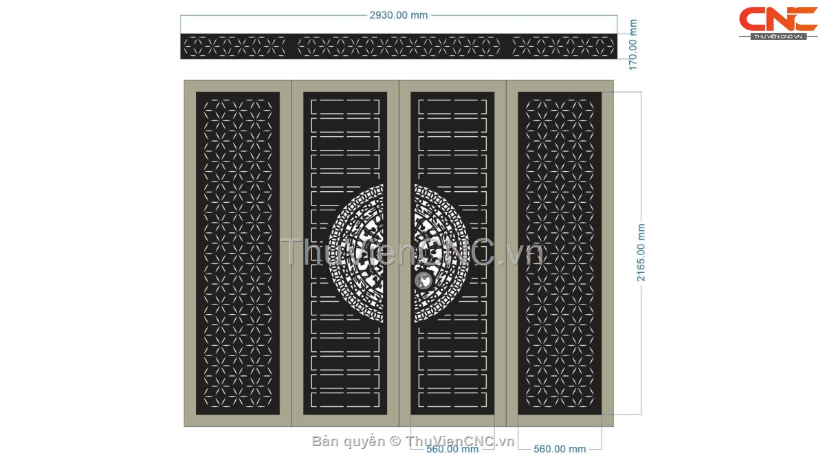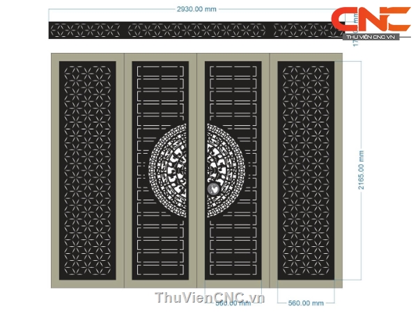 Model cnc cổng 4 cánh trống đồng hoa có ô thoáng