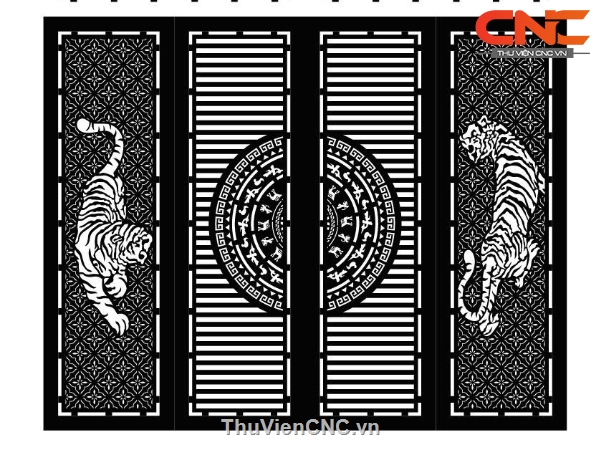 Model cnc cổng 4 cánh trống đồng kết hợp con hổ