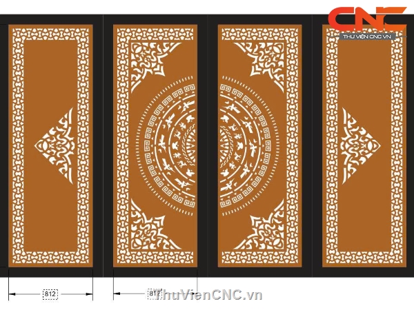 Model cnc cổng 4 cánh trống đồng kết hợp hoa góc