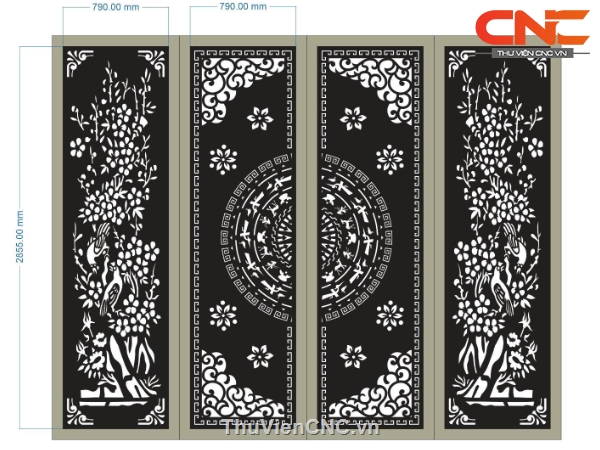 Model cnc cổng 4 cánh trống đồng mai