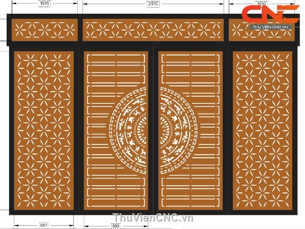 Model cnc cổng 4 cánh trống đồng ô thoáng đẹp