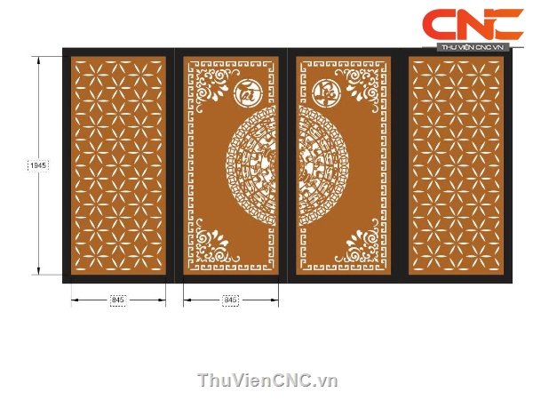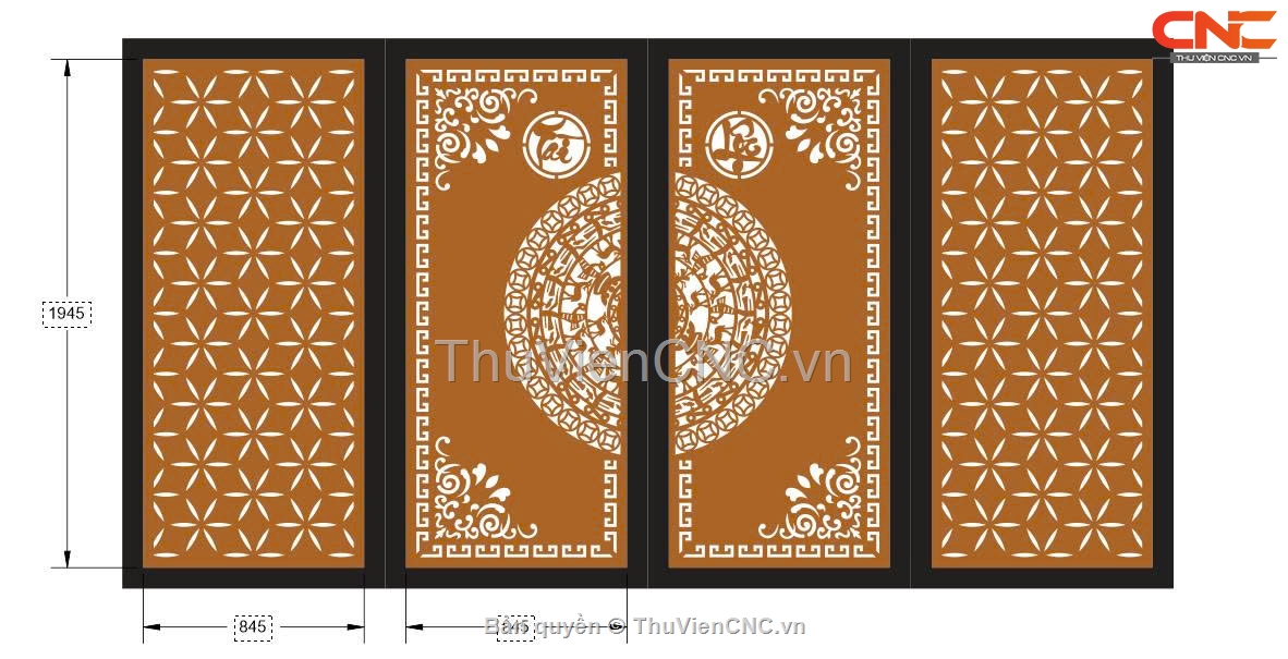 Model cnc cổng 4 cánh trống đồng tài lộc