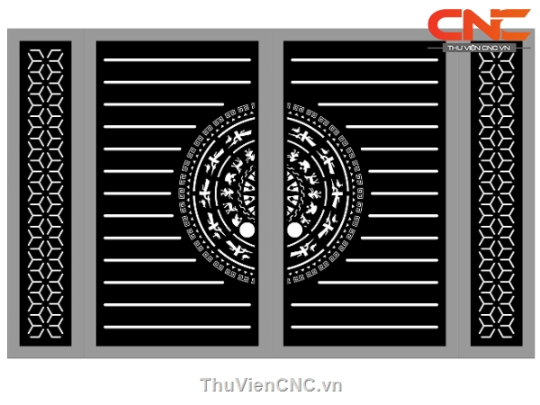 Model cnc cổng 4 cánh trống đồng to bông tuyết bé