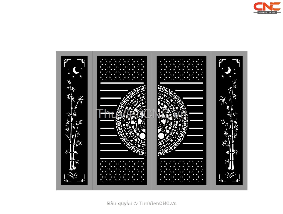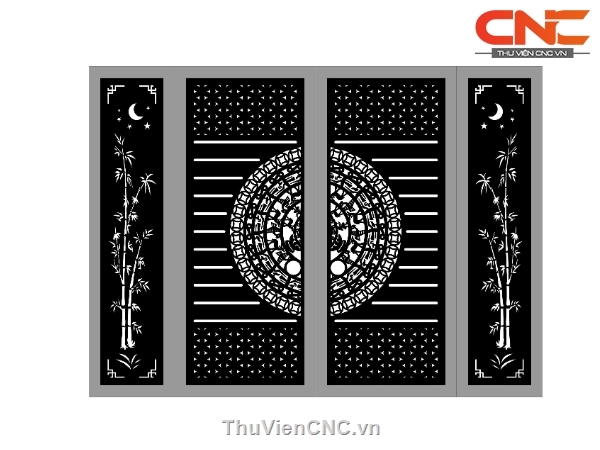 Model cnc cổng 4 cánh trống đồng trúc dxf