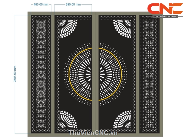 Model cnc cổng 4 cánh trống kết hợp hoa đẹp