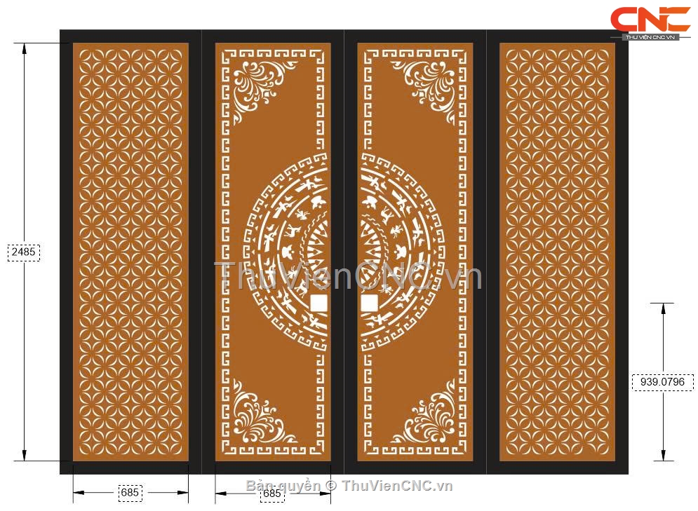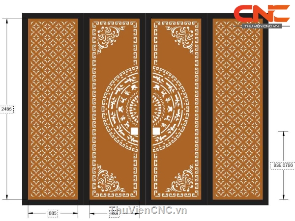 Model cnc cổng 4 cánh trống lỗ khóa vuông