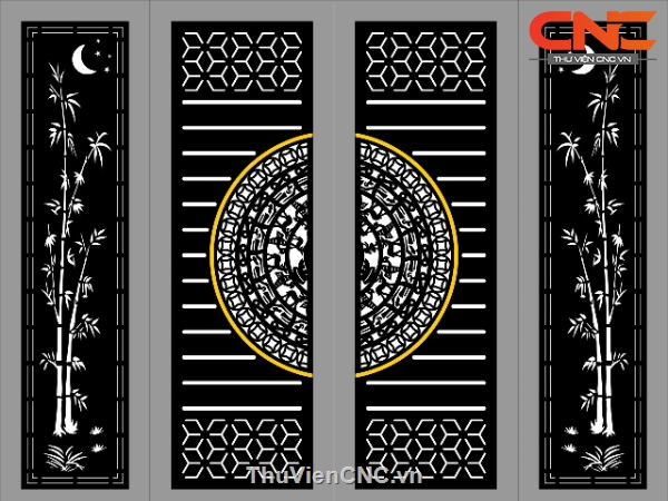 Model cnc cổng 4 cánh trống trúc dxf