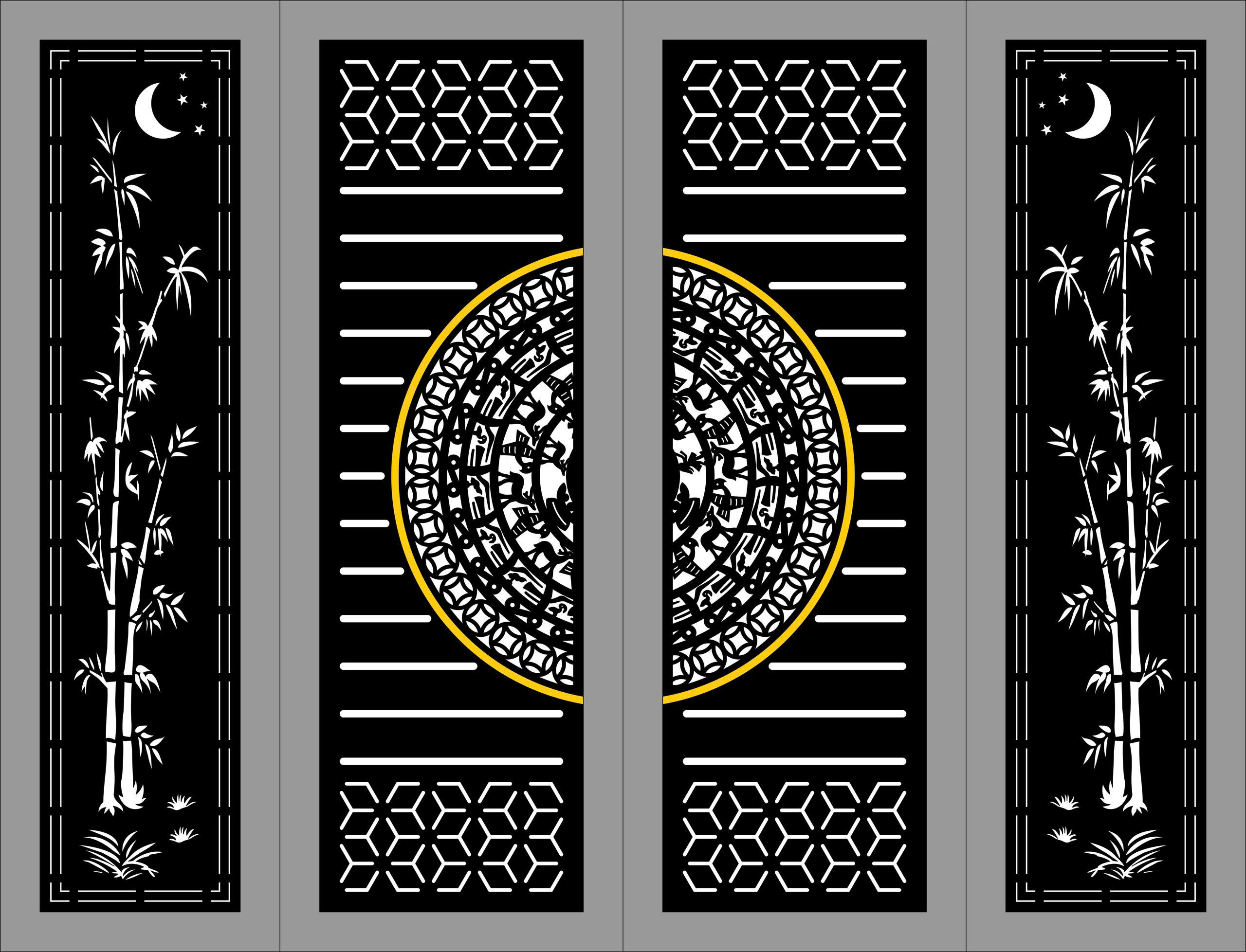 Model dxf cnc cổng 4 cánh trúc có ô thoáng