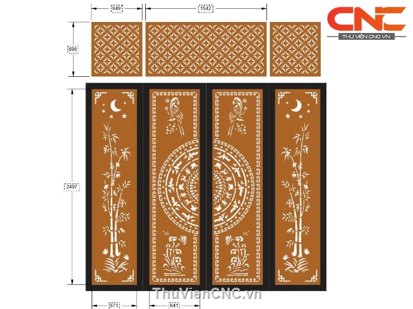 Model cnc cổng 4 cánh trúc chim có ô thoáng