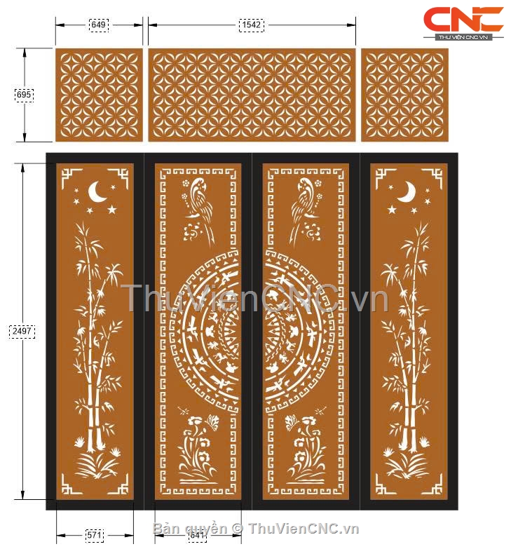 Model cnc cổng 4 cánh trống đồng dxf tháng 5