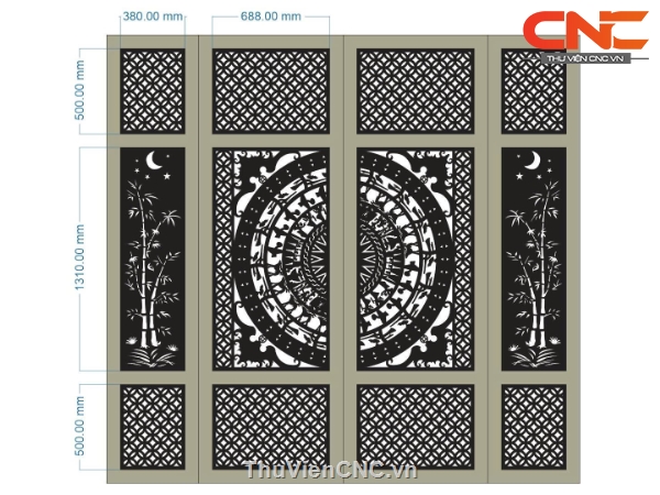 Model cnc cổng 4 cánh trúc dơi đồng tiền