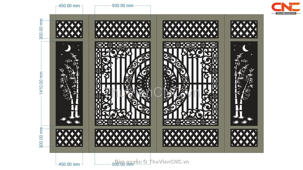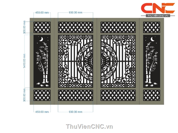Model cnc cổng 4 cánh trúc trống đồng