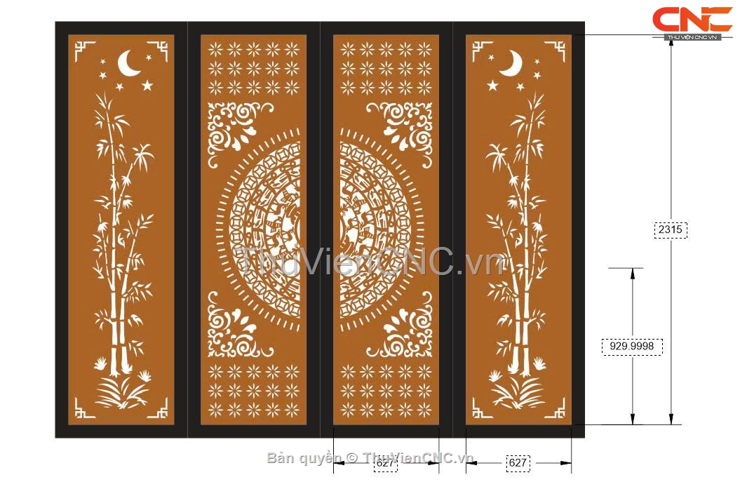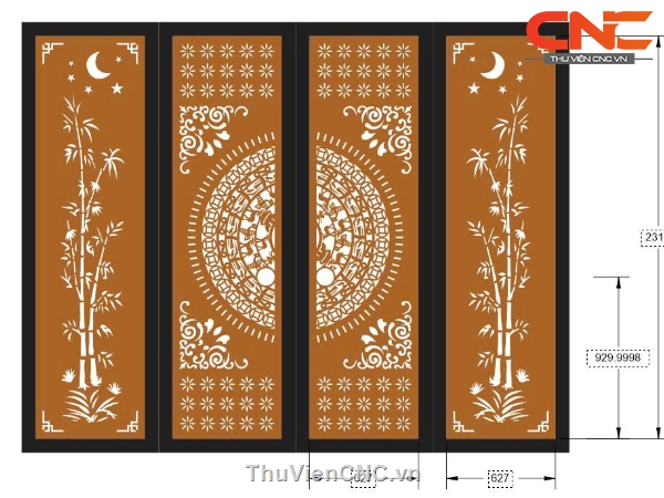 Model cnc cổng 4 cánh trúc trống đồng dxf
