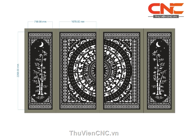 Model cnc cổng 4 cánh trúc và đồng tiền