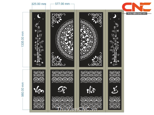 Model cnc cổng 4 cánh trúc vạn sự như ý