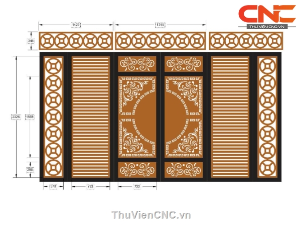 Model cnc cổng 6 cánh trống đồng và đồng tiền