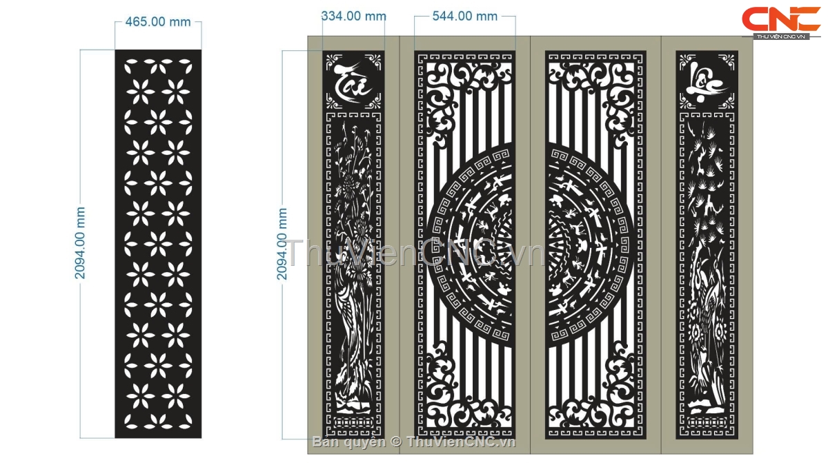Model cnc cổng tài lộc và vách hoa