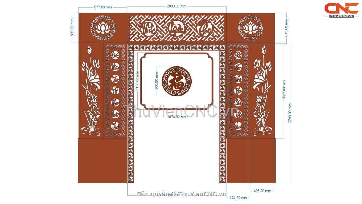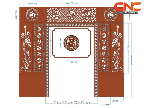 Model cnc vách ngăn phòng thờ phúc lộc thọ