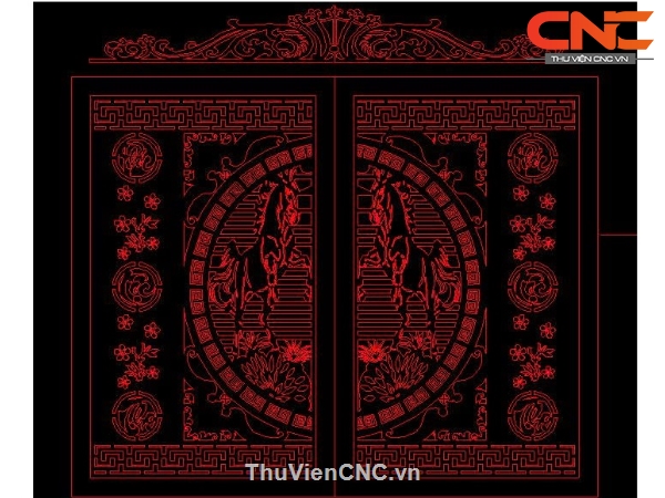 Model cổng 2 cánh phúc lộc thọ ngựa cnc