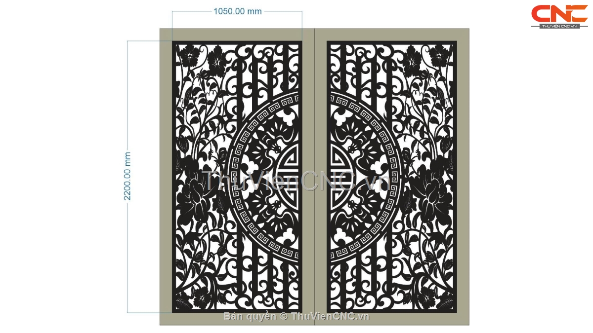 Model cổng 2 cánh trống đồng hoa cnc