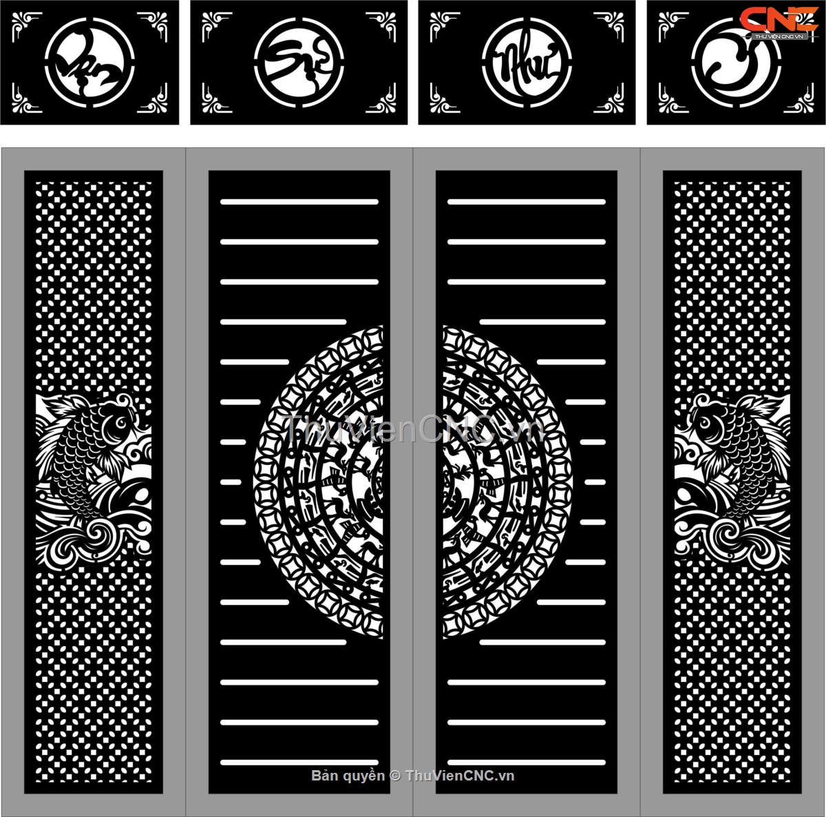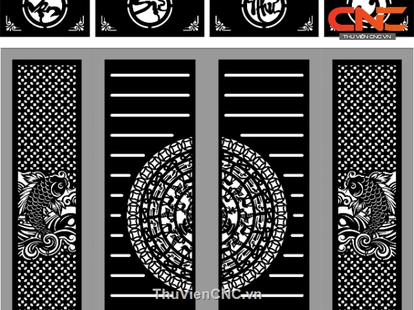 Model cổng 4 cánh cá chép vạn sự như ý cnc