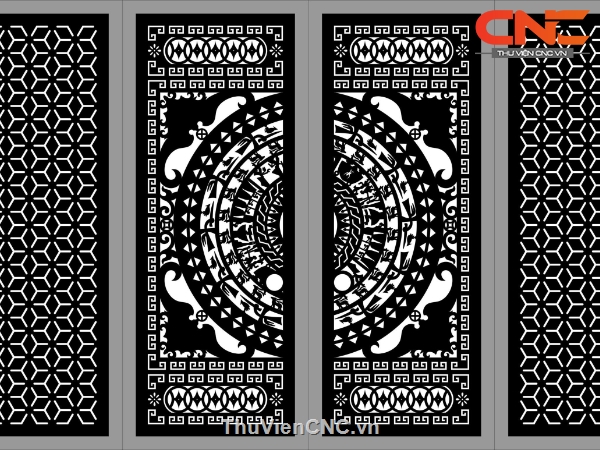 Model cổng 4 cánh cnc trống đồng bông tuyết