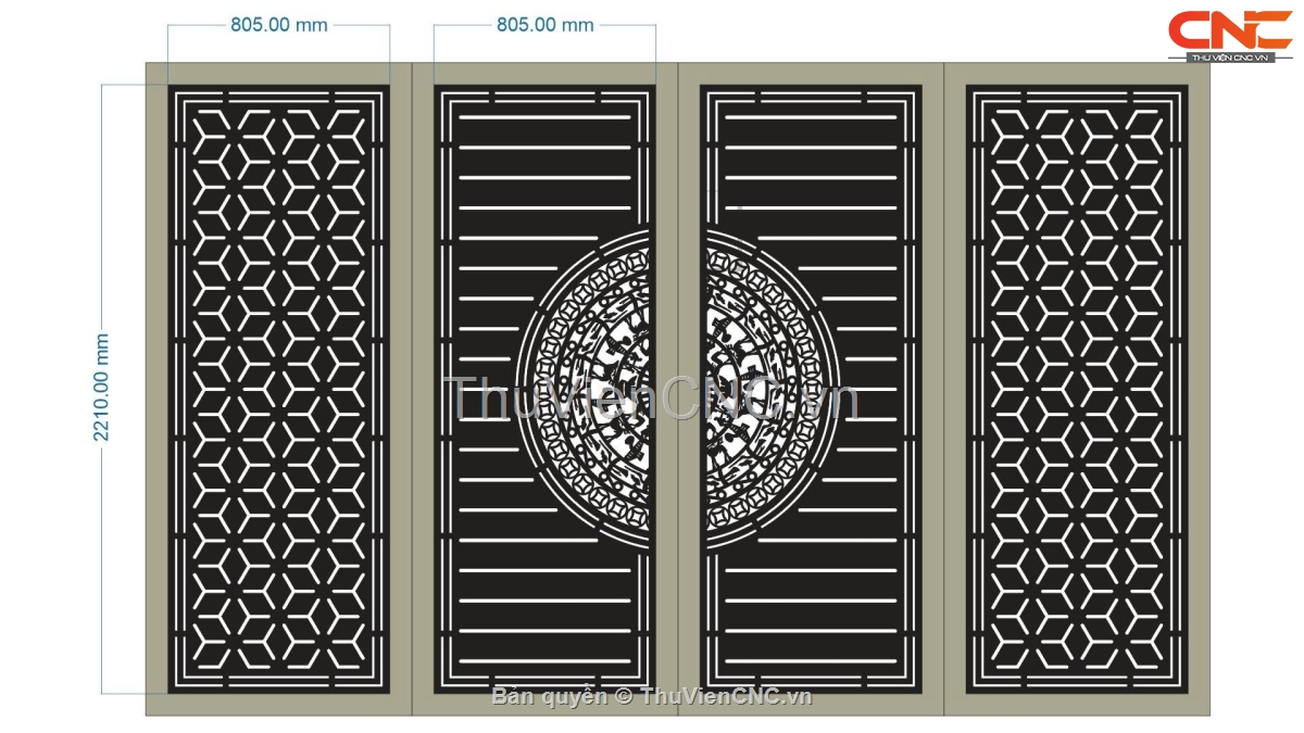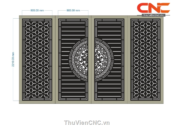 Model cổng cnc 4 cánh trống đồng hoa văn viền mới