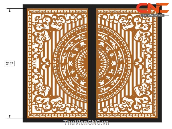 Model dxf cnc cổng 2 cánh trống đồng đẹp