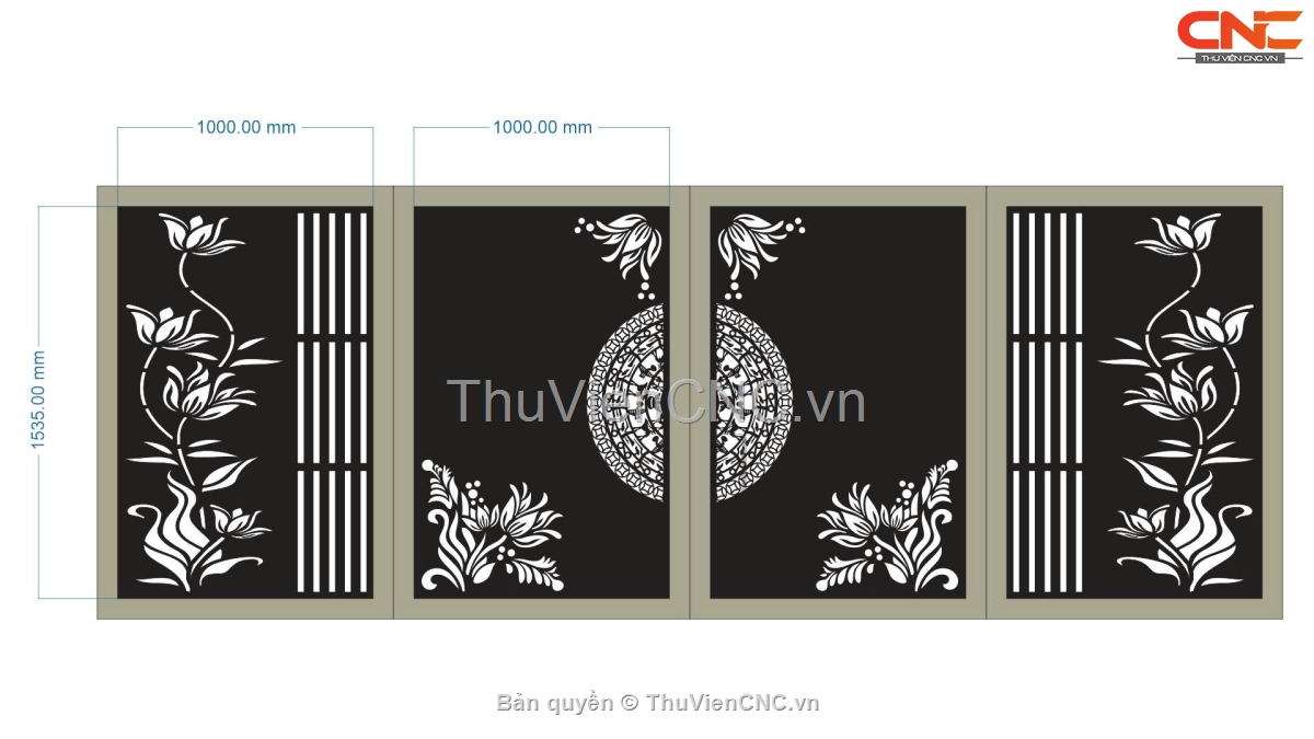 Model dxf cnc cổng 4 cánh hoa đẹp