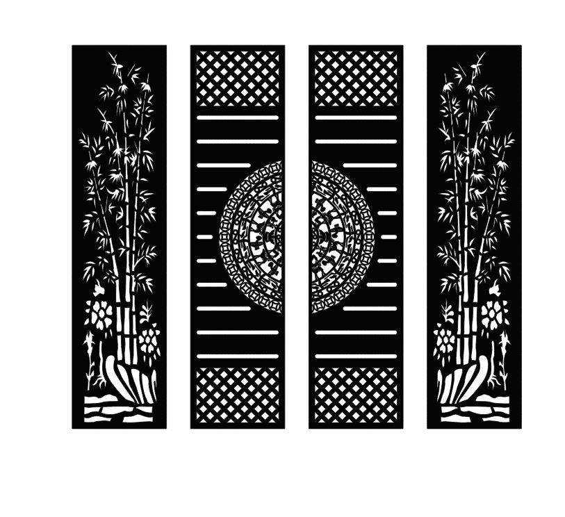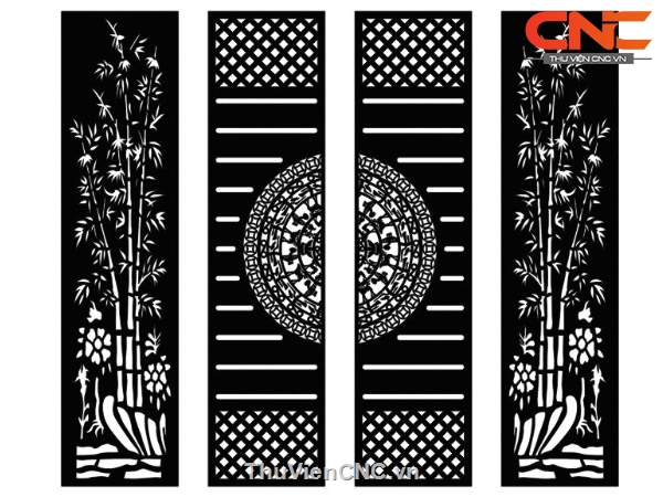 Model dxf cnc cổng 4 cánh trúc trống đồng