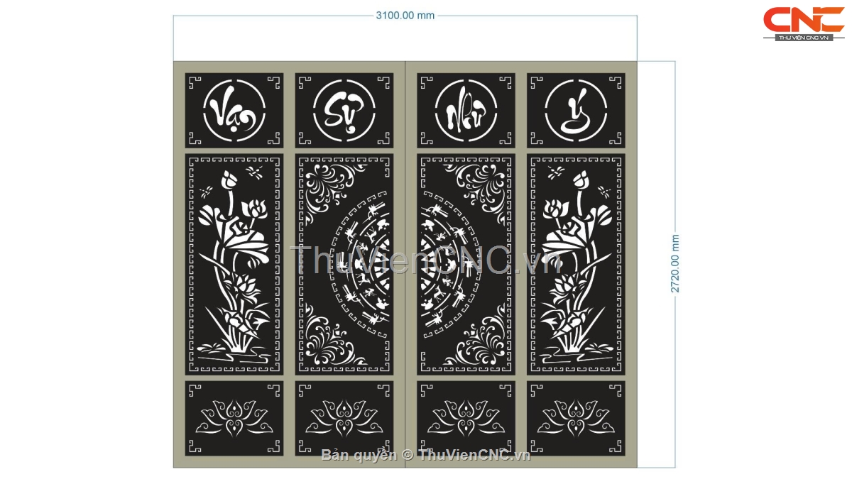 Model dxf cnc cổng 4 cánh vạn sự như ý sen