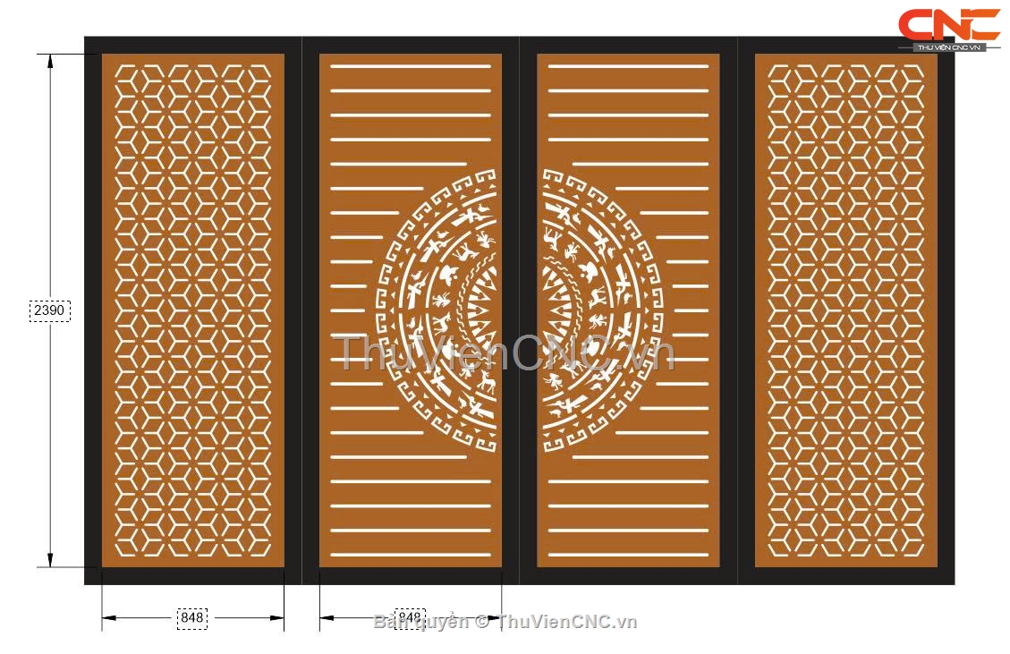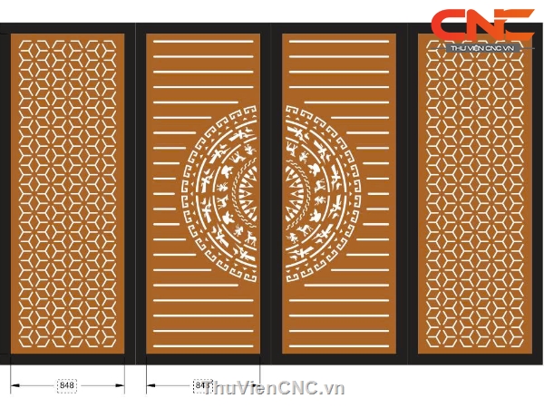 Thiết kế cắt cnc cổng 4 cánh trống đồng bông tuyết dwg